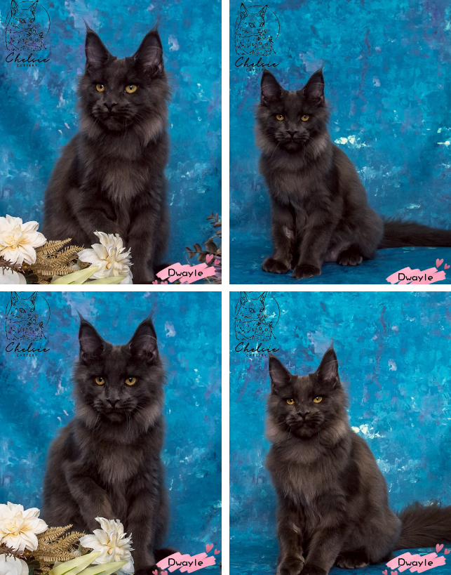 Dwayle 是隻藍煙色的緬因小女生,毛色柔霧低調,灰藍交織像晨霧一樣溫柔,搭配清秀的臉蛋,看起來特別安靜可人。