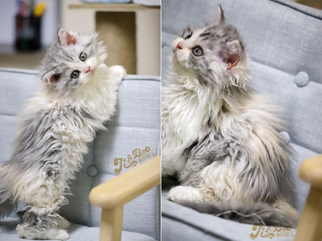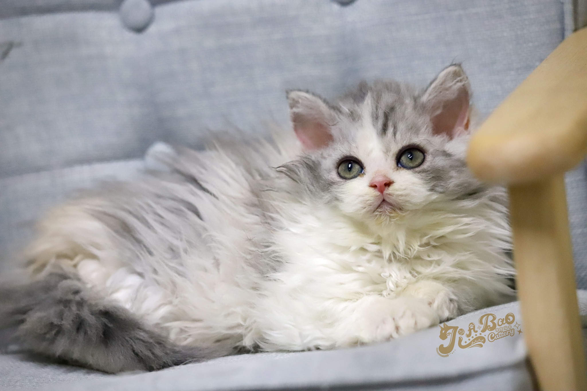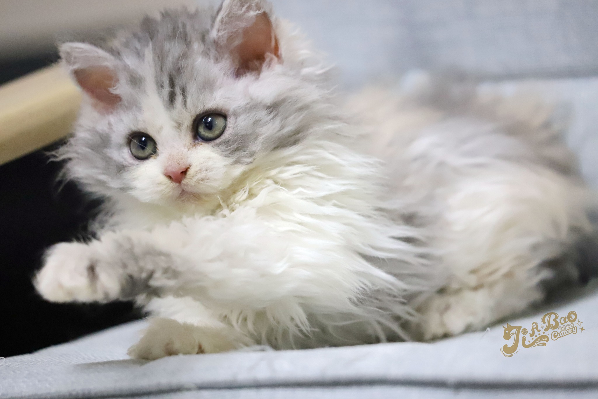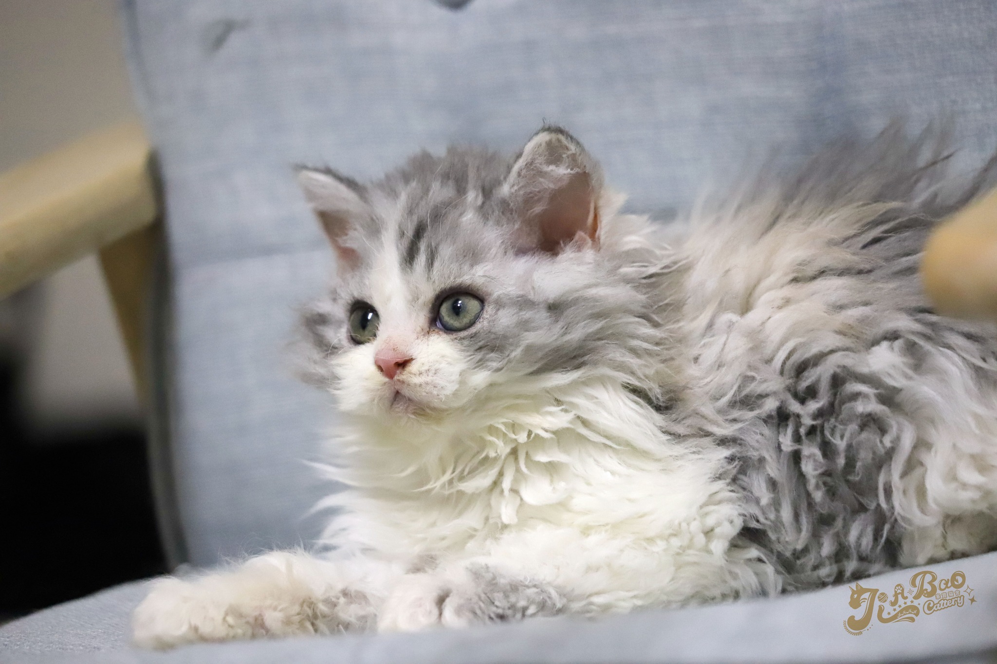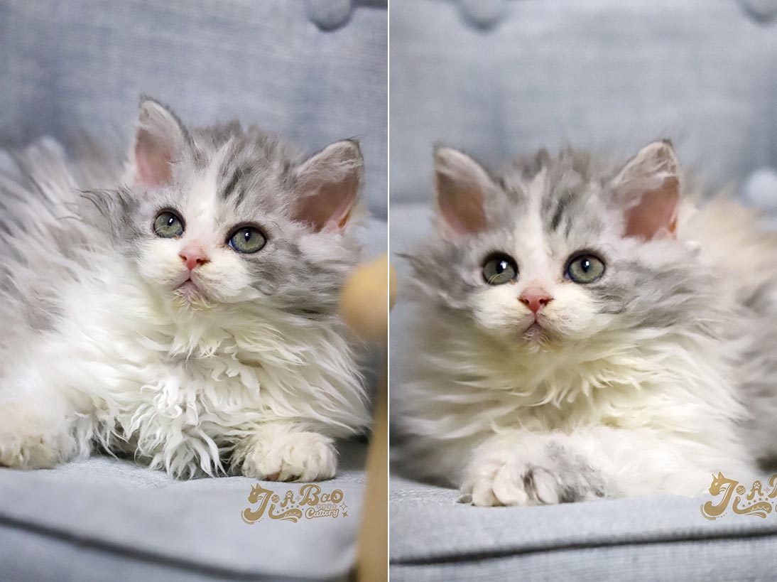 家寶寵物/銀三花賓士賽爾凱克捲毛貓