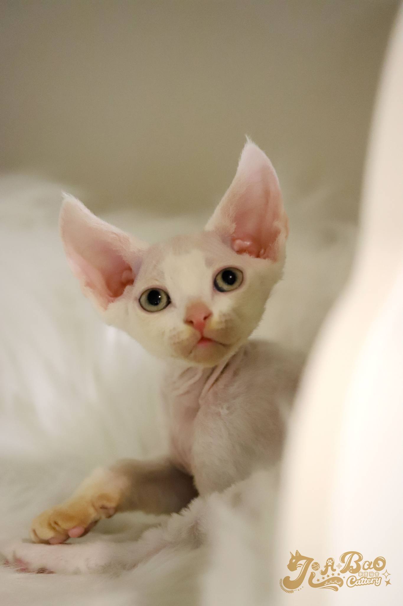 家寶寵物/白色德文捲毛貓