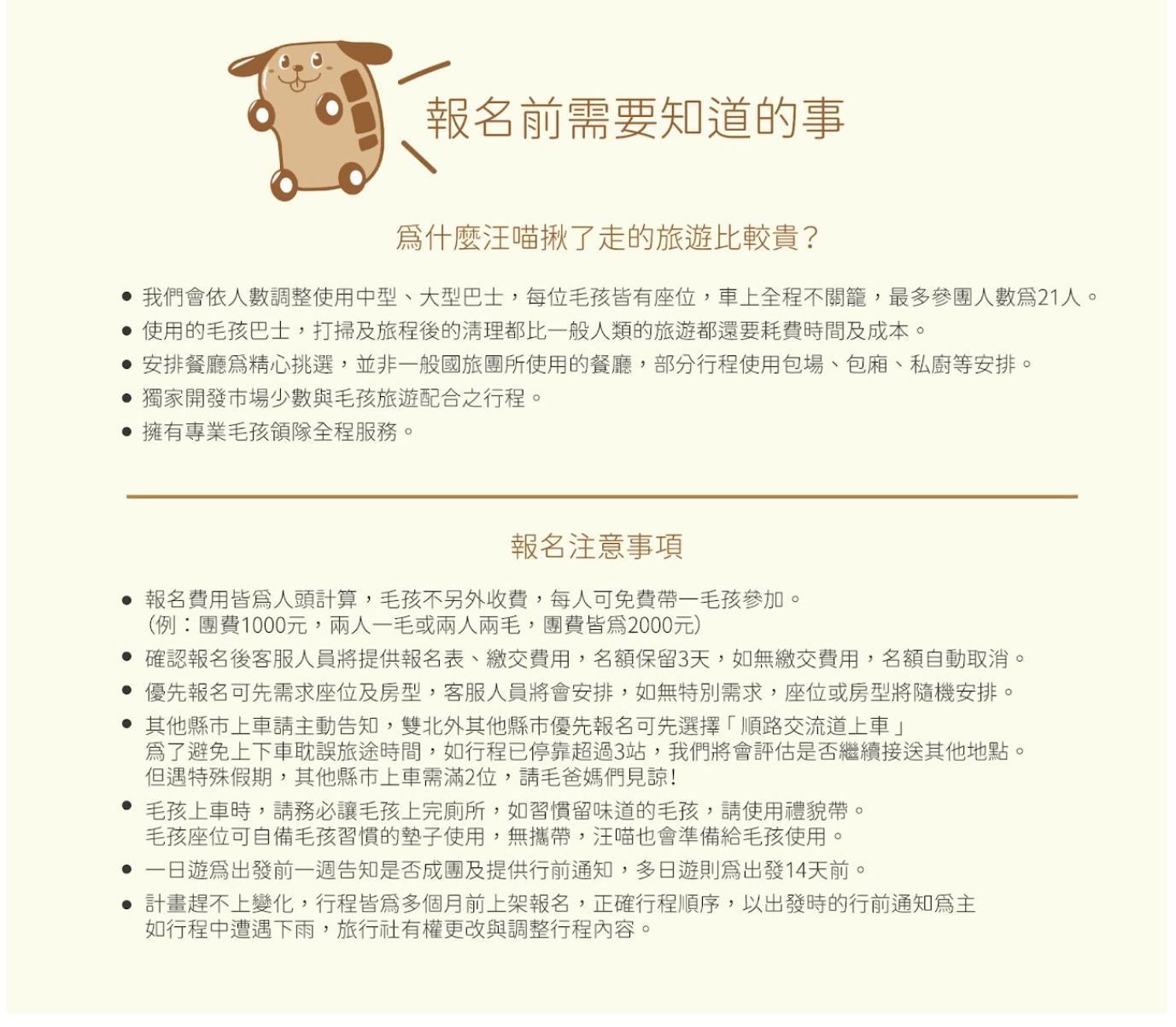 - 毛小孩清潔費、毛孩座位