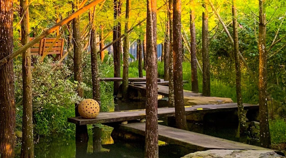 於臺中北屯的世外秘境,精緻的園區裡從落羽松水景步道到角落的花叢處處藏著驚喜,從獨自散心到親友歡聚都適合的好去處。