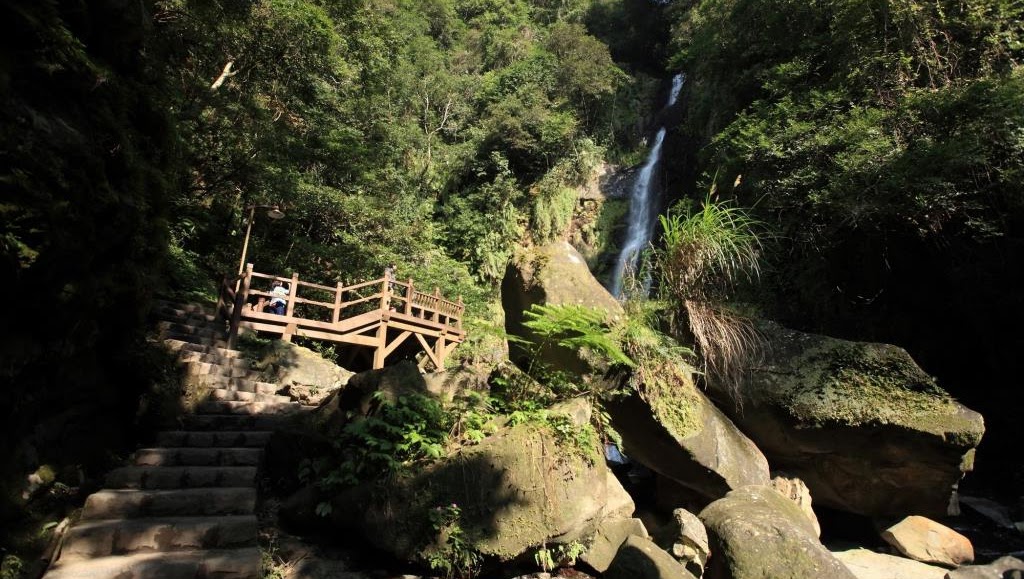 大名鼎鼎的五峰旗瀑布步道相當熱門,每到假日總是有絡繹不絕的人潮前來朝聖。步道長度僅約1公里左右,坡度堪稱平緩,也易於行走。沿途連綿的綠樹,遮蓋了炎炎烈日,微涼的步道實在舒適。氣勢磅礡的瀑布分為三層,第一層瀑布長約50公尺、第二層瀑布約30公尺,最底下的第三層瀑布約20公尺,瀑布下方設有觀景平台或涼亭,走到這裡,除了停留休息、欣賞秀麗的絕壁飛瀑之外,更要大口大口呼吸,用新鮮清淨的空氣來保持愉快的好心情!