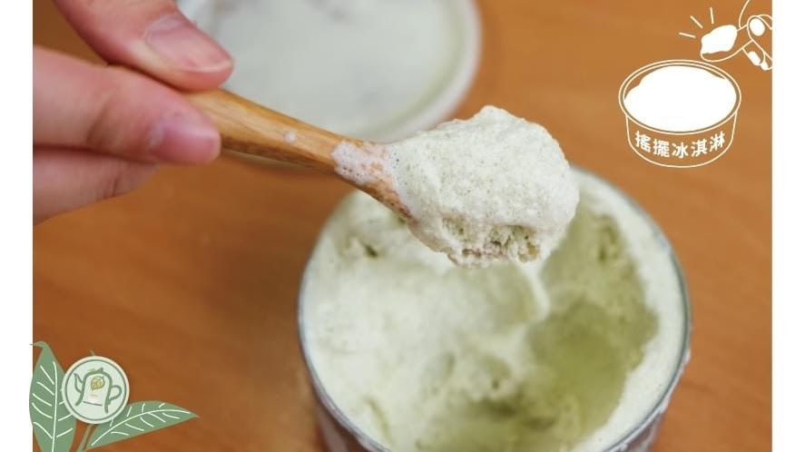 到茶園體驗還可以做運動?返鄉青農發揮創意,茶也可以玩得很有趣,把冰淇淋原料結合在地純綠茶粉,放入小搖桶裡面,搭配音樂舞動身體,搖出一杯自己的冰淇淋,要認真搖才會成功唷!
