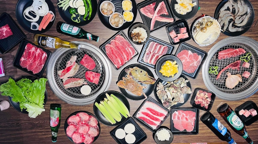 室內自助式BBQ吃到飽的餐廳,店內風格走工業風設計,餐點內容以燒烤為主,搭配多樣熟食與配菜選擇,能依個人口味自由取用,吃得豐盛又有彈性。從肉品到海鮮,整體選項齊全 。