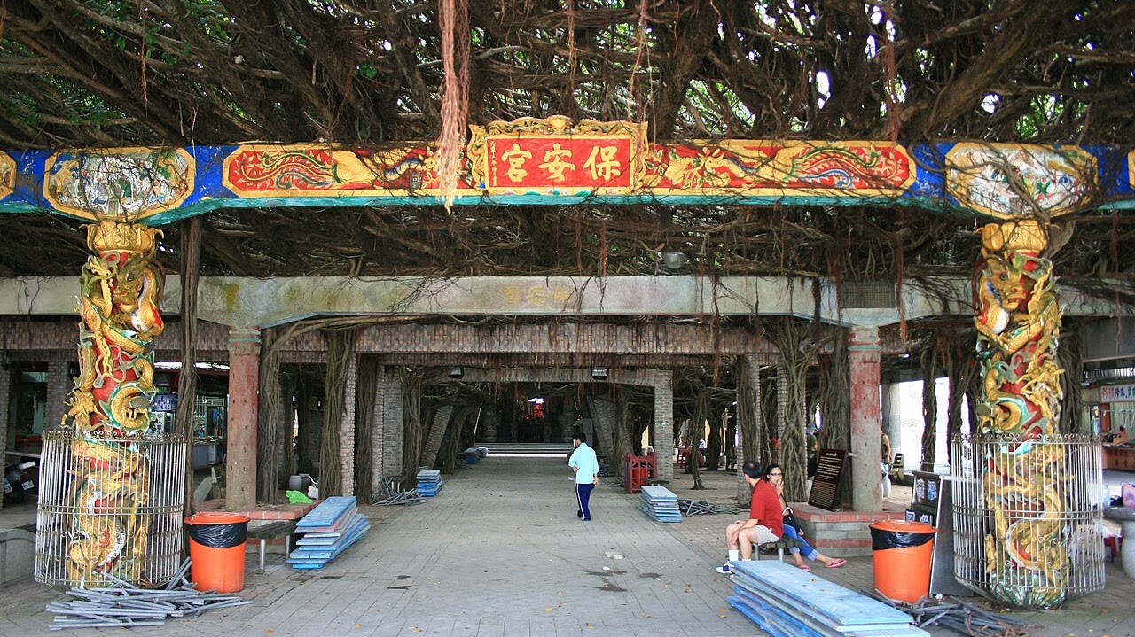 通梁村位在白沙島的西端,即在通過跨海大橋鄰近不遠處,通梁古榕位在通梁村保安宮前,樹齡至今已經有三百多年,傳說三百多年前有艘貿易船在吼門水道遇難沉沒,僅剩一株樹苗漂至岸邊為村民所拾穫而栽種,樹枝不斷生長後,氣根下垂於地,又著地生長而延展成一片茂盛濃密的樹林,成為納涼、避暑的好地方,若是沒有認真觀察,實在難以相信全是來自於同一棵樹的枝幹。
