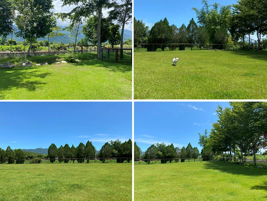 毛球公爵的大草皮區超級適合親子寵物,圍欄也做得扎實,不怕毛小孩飛奔而出。