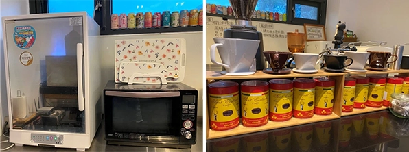 咖啡機、電鍋、烤箱、兒童用的消毒箱,如果不會使用,牆壁上還有SOP。