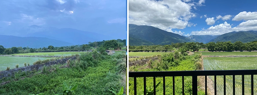 在往鳳林的路上,雖然沒有許多民宿業者林立在路邊,但看著連綿不斷青青綠綠的山和插秧的田地,也別有一番感覺。