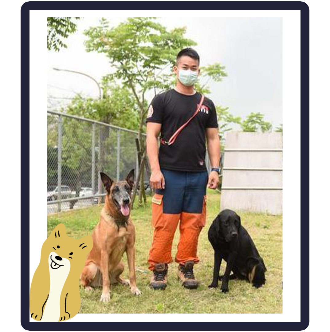 1.臺灣警察專科學校-23期消防安全科畢業證書2.東南科技大學-營建科技與防災研究所畢業證書3.搜救犬隊小隊長現職派令4.特種搜救隊證書5.IRO訓練員證書6.2019亞洲區MRT搜救犬隊救援能力認證通過證書7.消防設備士證書8.內政部消防署地震災害人道救援能力訓練9.內政部消防署全國災害搜救犬平時照護暨緊急醫療訓練10. 106年臺北市陪伴犬協會-國際災害搜救犬IRO訓練(服從暨敏捷、足跡追蹤、廣域搜尋)11. IRO瓦礫堆搜救犬高級認證-Beta12. IRO瓦礫堆搜救犬高級認證-Xenia13. IRO瓦礫堆搜救犬高級認證-Irving
